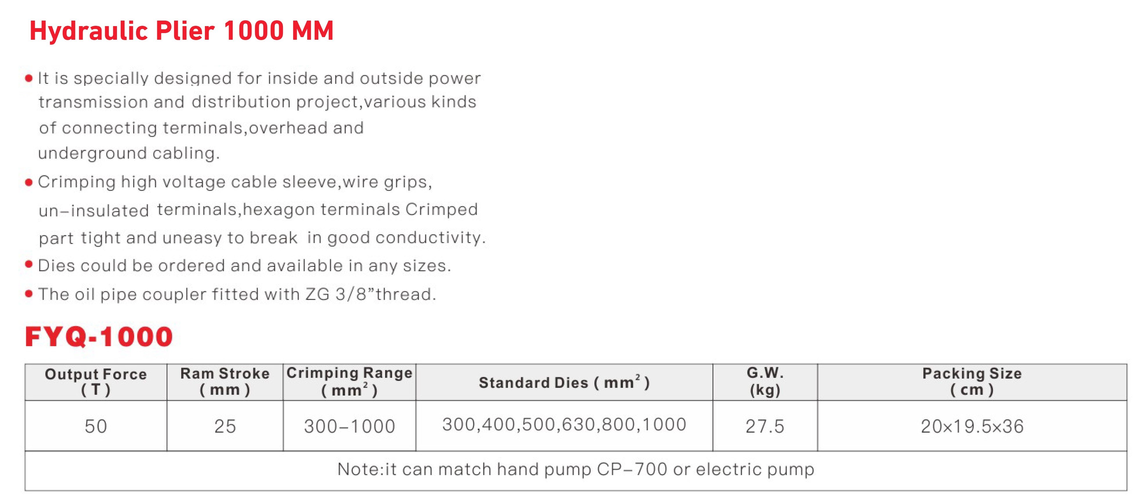 رأس مكبس كيبل هيدروليك 1000-300 FYQ