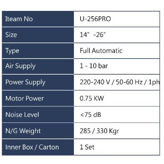 ماكينة حل وتركيب كفرات 26 بوصة صيني فل أتوامتيك & ذراع مساعد & خزان هواء APT U-256 PRO