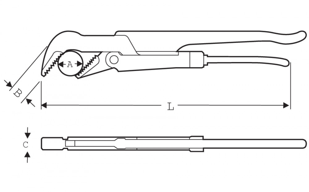 مفتاح مواسير سويدي 1.1/2" بوصة 45 ْ فكين ضيق للعمل في الأماكن الضيقة مصنوع من قطعة واحدة ،