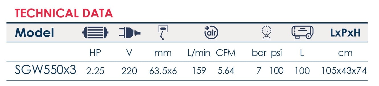 كمبروسور ضاغط هواء صامت 100 لتر APT SGW550Z*3-100L