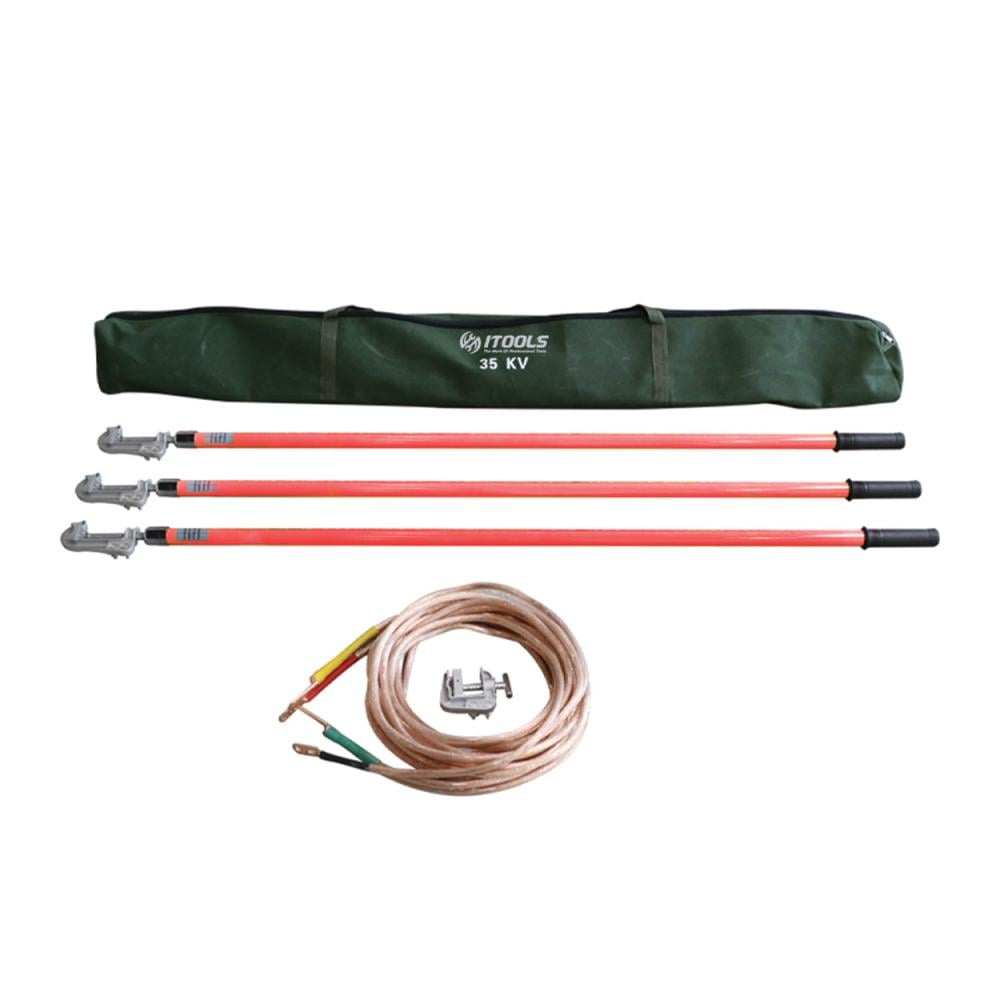 Fiberglass Stick: 1.5m x 3 pcsUpper Clamp: 3 pcsEarth Clamp: 1 pcsCopper Cable: 35mm² x 4.5m, 2 pcsCopper Cable: 35mm² x 12m, 1pcs