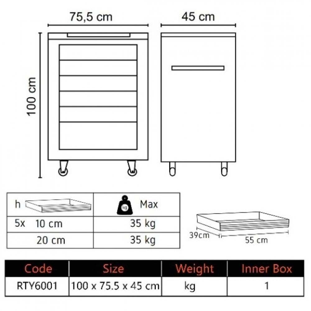 Tool Trolley 6 Drawers TURKEY RETTA-RTY6001