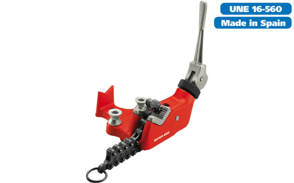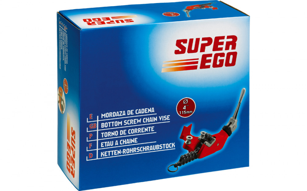 تتميز ملزمة أنابيب الحديد من SUPER EGO بفكين مسنن على شكل حرف V مصنوع من الحديد الصلب القادر على تحمل ضغط العمل . وسلسلة لولبية بطول 762مم