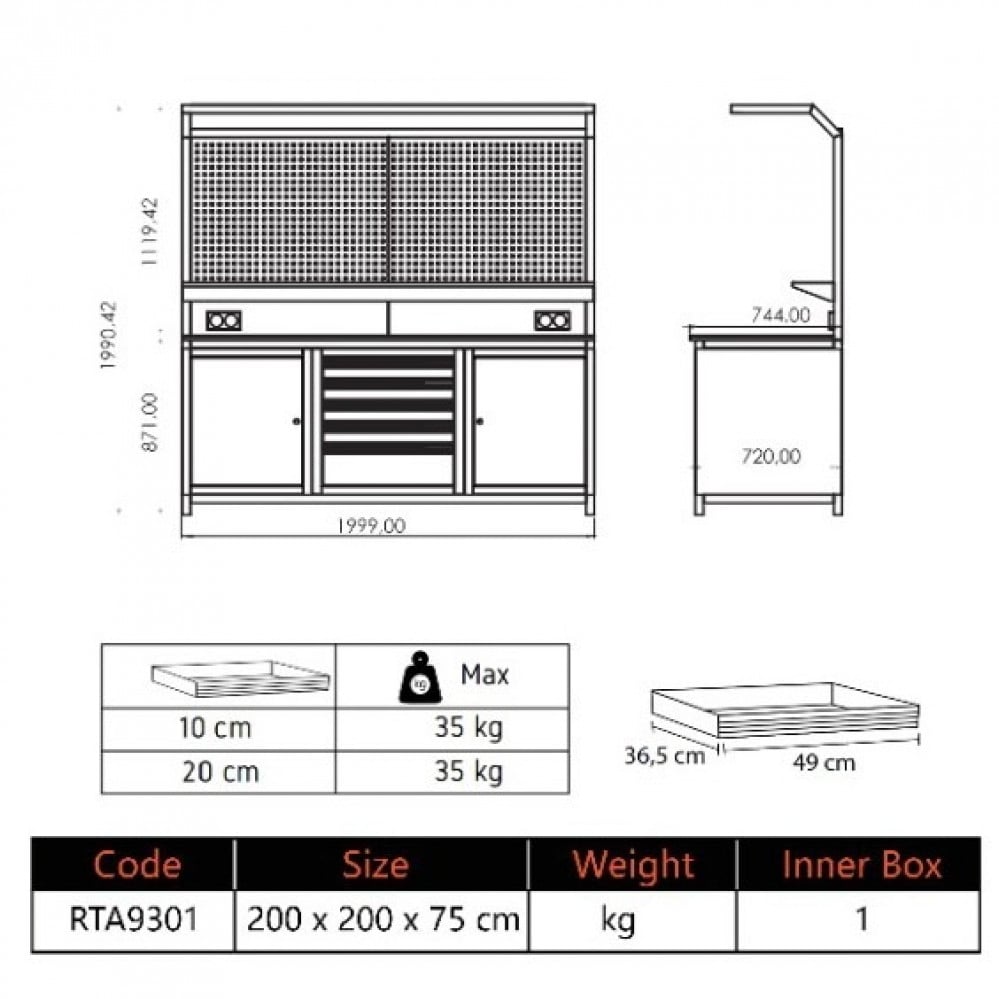 Work Bench 5 Drawer + 2 Side Shelf + 1 Board RETTA-RTA9301